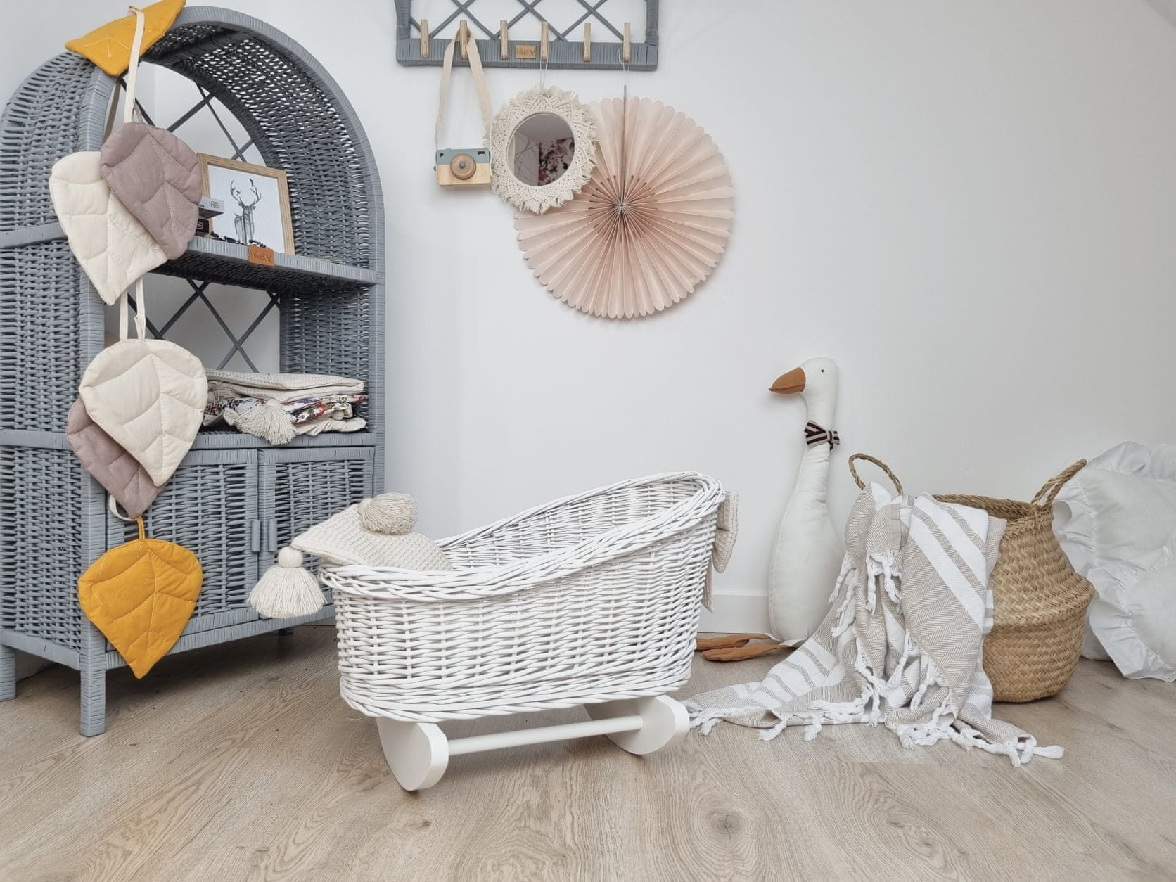 BELA pletena zibelka je pobarvana z varno, ekološko barvo.