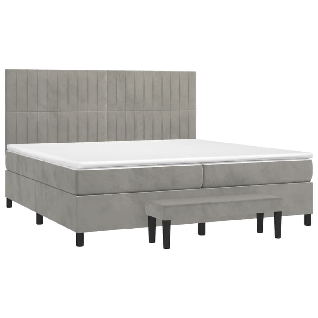 Vidaxl Box spring postelja z vzmetnico svetlo siva 200x200 cm žamet