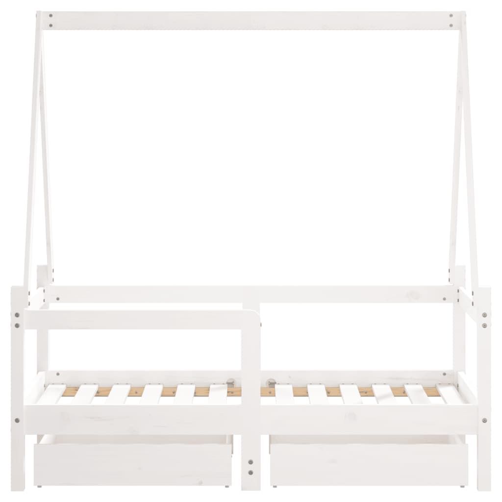 Vidaxl Otroški posteljni okvir s predali bel 70x140 cm trdna borovina