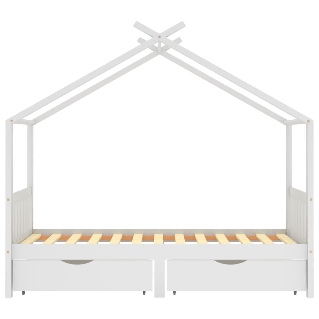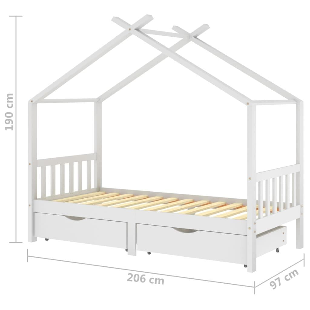 Vidaxl Otroški posteljni okvir s predali bela trdna borovina 90x200 cm
