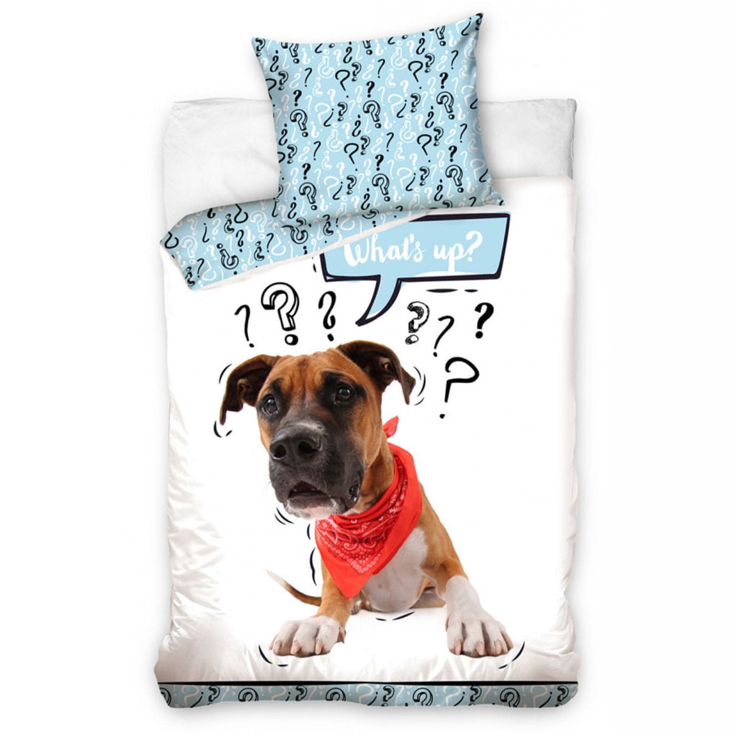 Posteljnina kuža z rutico je izdelana iz kakovostnega bombaža, ki zagotavlja udobnost in trajnost. Posteljni set vsebuje prevleko za vzglavnik in odejo v velikosti 140×200 cm. Celoten opis