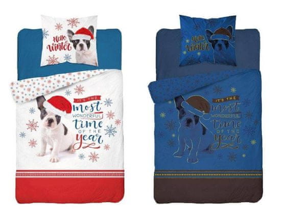 Detexpol Božična bombažna posteljnina, buldog, 140 x 200, Detexpol