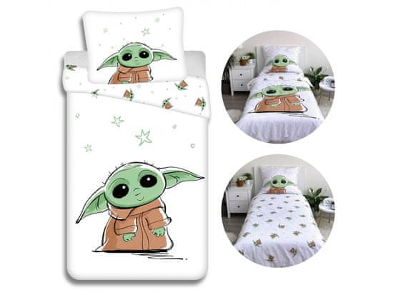 Na prevleki za vzglavnik je upodobljen ljubek Baby Yoda, obdan z zvezdami, kar posteljnini doda čaroben pridih.