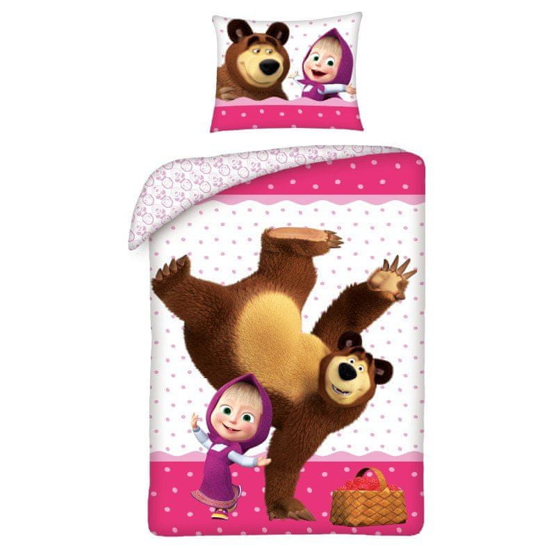 Halantex Bombažno posteljno perilo v vrečki Maša in medved polka dots 140 x 200 cm