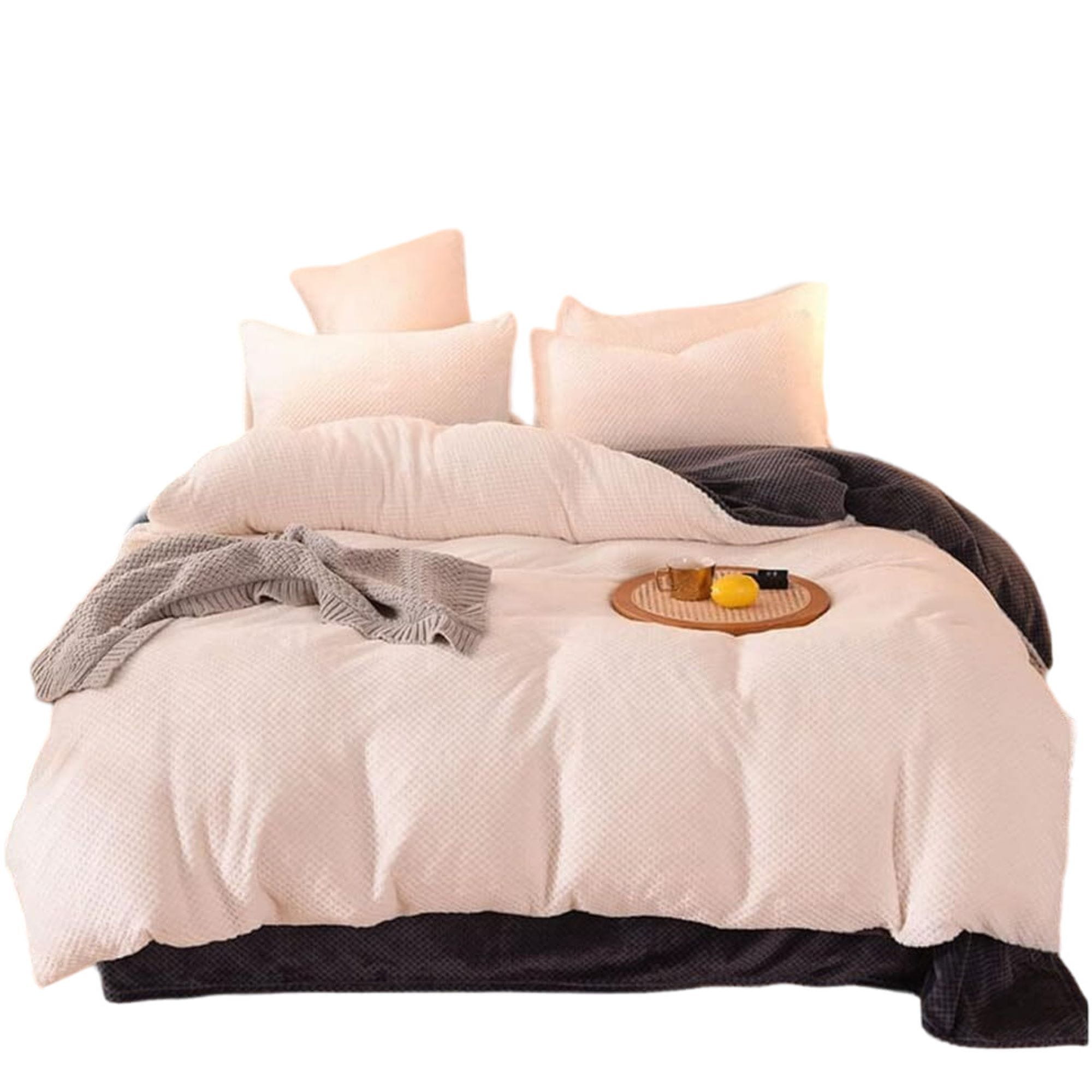 HOME & MARKER® Posteljnina, Posteljne prevleke, Topla posteljnina, Pliš posteljnina ( 1x prevleka za odejo + 1 x prevleka za vzmetnico + 2 x prevleka za vzglavnik, Bež/Siva)| FLEECEDREAM