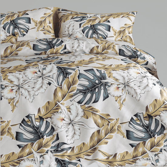 Moderna cvetlična zasnova bombažne posteljnine LIMBO vas bo očarala že na prvi pogled. Vaši spalnici bo dodala nekaj eksotičnega pridiha. Kombinacija prijetnih bež in sivih odtenkov je videti sveža in zanimiva. Zasnova te posteljnine z veliko podrobnostmi je videti odlično in vas navdihuje s pozitivnimi energičnimi vibracijami za boljše počutje. Posteljnina LIMBO iz naravnega bombaža, ki diha, zagotavlja hlad in udobje med spanjem.