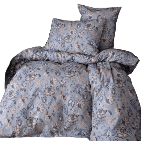 Mehki odtenki in razkošne teksture bombažne posteljnine PERVIN vzbujajo občutek miru. Lepa kombinacija mehkih modro-sivih barv s cvetličnim vzorcem z orientalskim pridihom poskrbi za čudovite vibracije v vaši spalnici. Naravna bombažna tkanina, ki diha, v posteljnini PERVIN uravnava temperaturo in omogoča globlji počitek med spanjem.