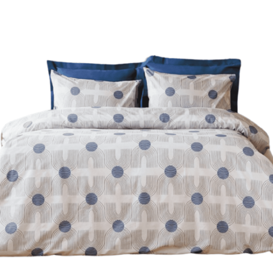 Bombažno posteljno perilo PONTI ima sodobno grafično obliko in bo odlično poudarilo individualnost vaše spalnice. Harmonična kombinacija barv in podrobnosti je videti zelo sveža in zanimiva. Sodoben grafični ornament s številnimi izrazitimi podrobnostmi je videti živahen in v vzdušje vaše spalnice vnaša pozitivne energične vibracije. Posteljnina PONTI iz naravne bombažne tkanine, ki diha, poskrbi, da vam je med spanjem hladno in udobno.