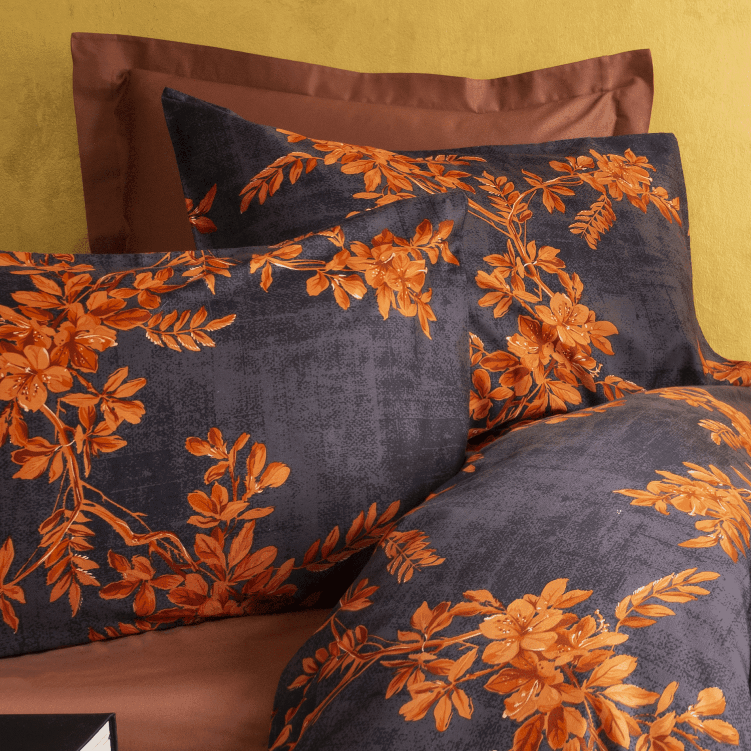 Če imate raje cvetlične vzorce, se pustite očarati nad razkošno eleganco cvetličnega vzorca naše bombažno satenaste posteljnine GLENDA. Kombinacija prijetne temno sive barve z odtenki sive in svetlo oranžne barve ustvarja vzdušje strasti in razkošja. Tehnologije digitalnega tiska na tkanino „oživijo“ vzorec na tkanini.