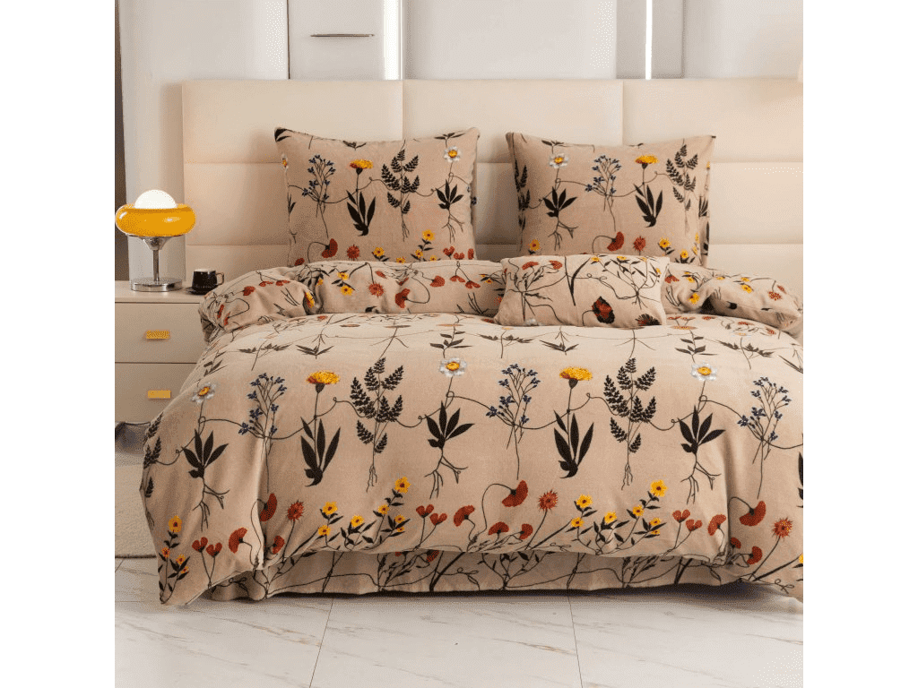 Ljubki dom Posteljnina mikropliš HERBÁRIJ bež Dimenzije posteljnine: 2 kom 70 x 90 cm | 200 x 220 cm