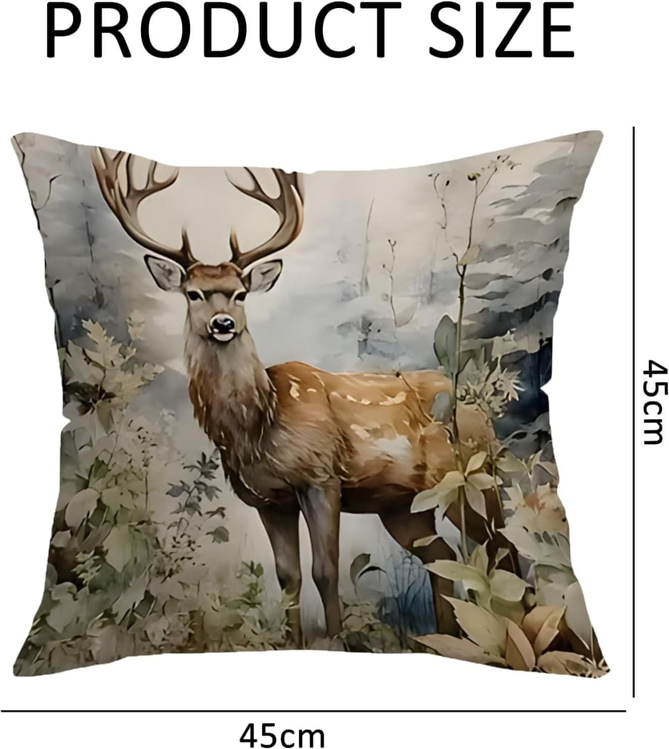 Nikcorp Božična okrasna prevleka za blazino 45x45 cm | Dekorativna blazina z motivom severnega jelena, laneni bombaž