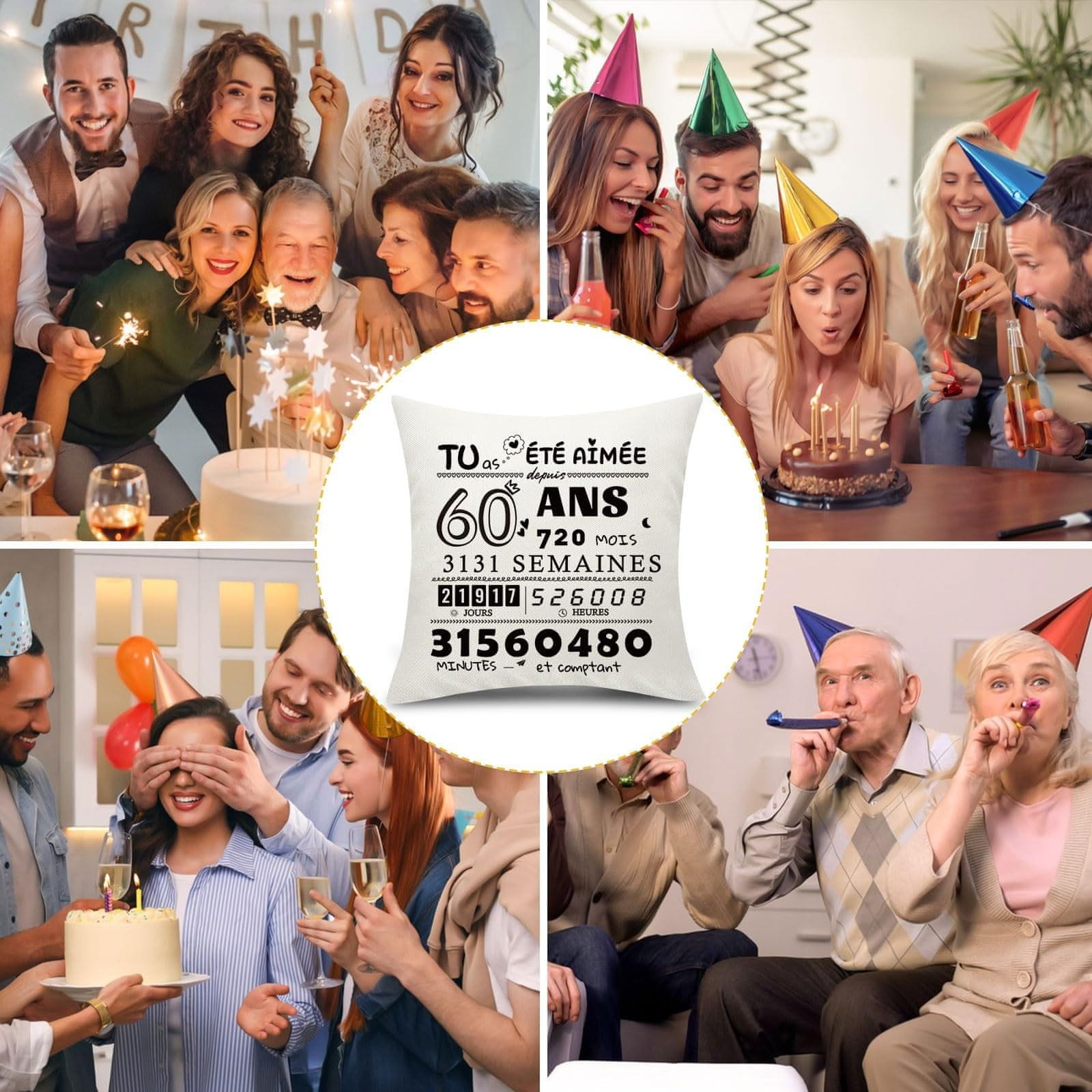 Nikcorp Prevleka za blazino z žepi za 60. rojstni dan, darilna dekorativna prevleka, bela barva, bombažno platno, 45x45 cm