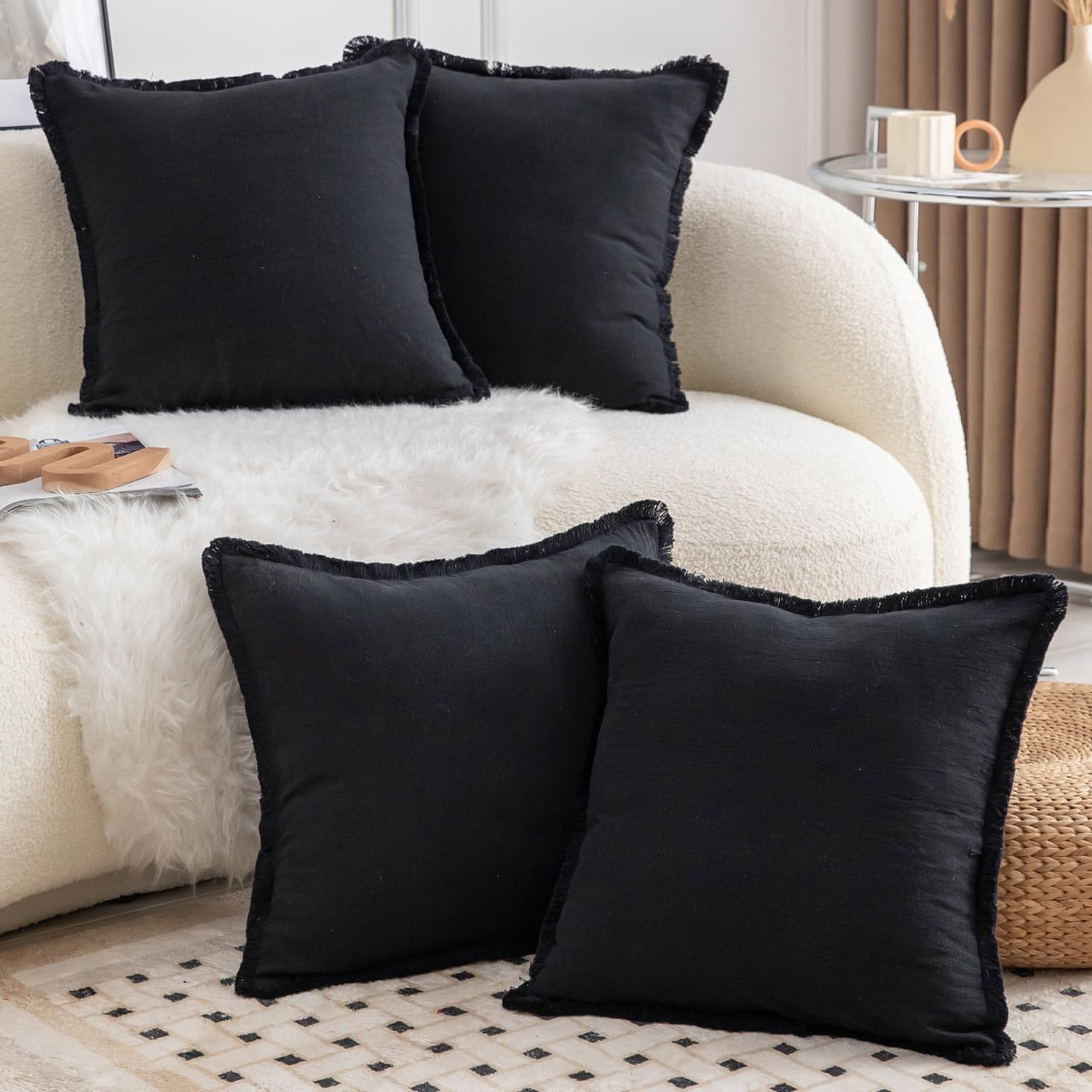 Nikcorp Prevleke za vzglavnike z resicami, bombažne, boho stil, črne, 55 x 55 cm, komplet 4 kosi, dekorativne prevleke za blazine