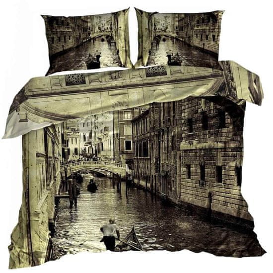 Posteljnina, ki prikazuje beneško mesto, za katero so značilni vodni kanali med številnimi stavbami.