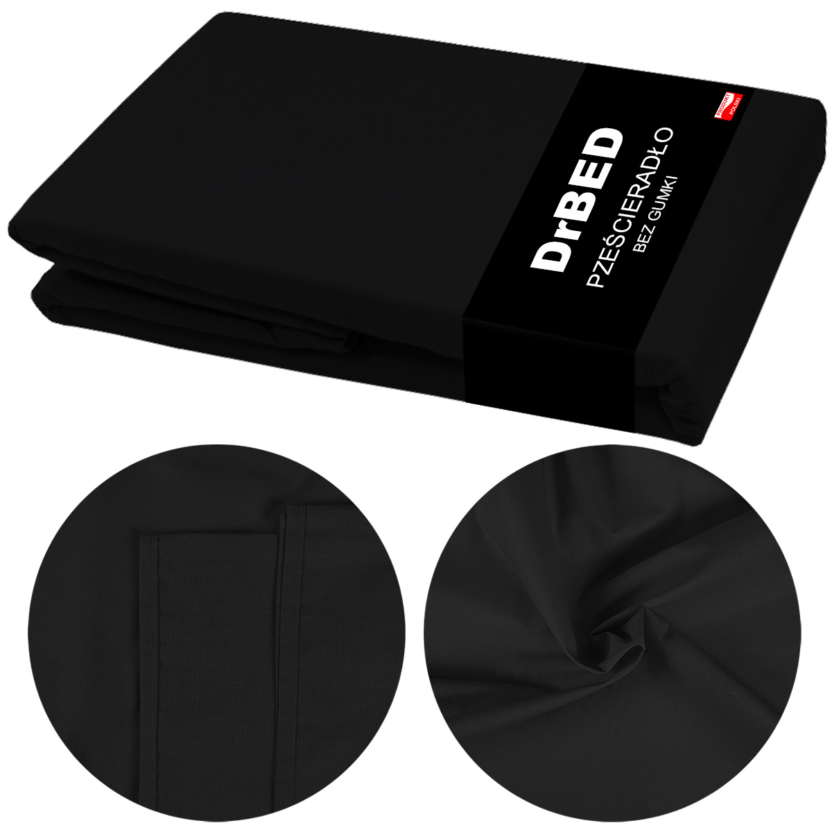 Bombažna rjuha z elastiko 220 × 200 Dihajoča ČRNO Polirana
