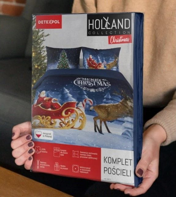 shumee NIZOZEMSKA bombažna posteljnina 160x200cm BOŽIČNA EKSKLUZIVNA Božiček s sanmi