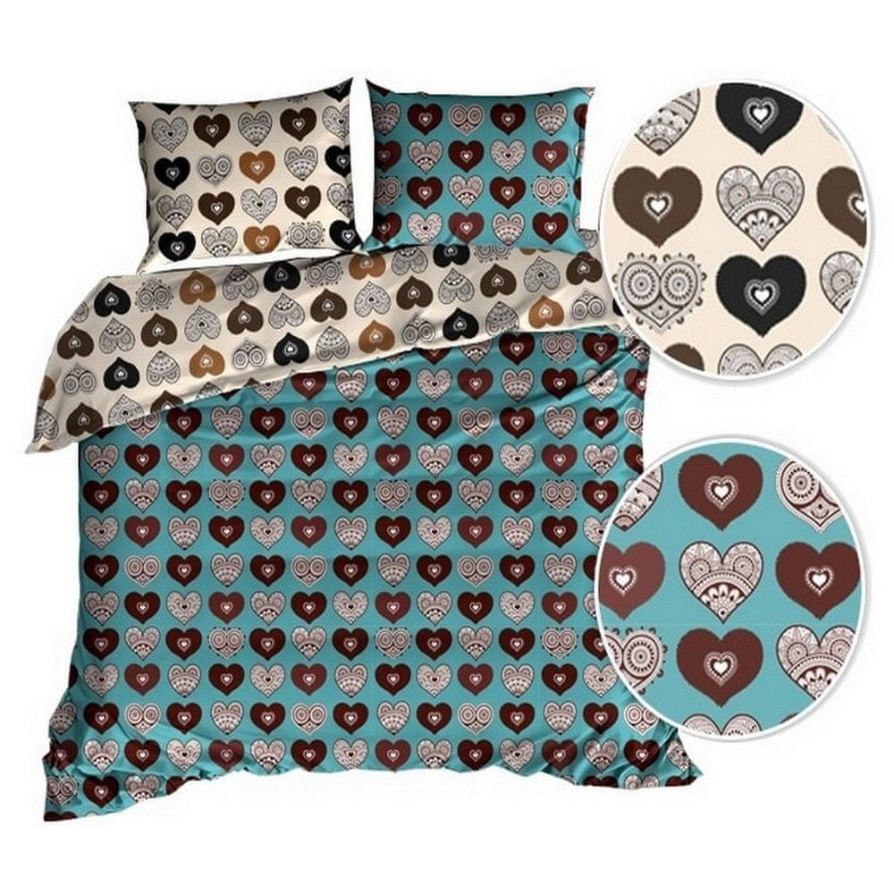 shumee Posteljnina iz bombažnega satena 160x200cm DVOSTRANSKA - SRČKI