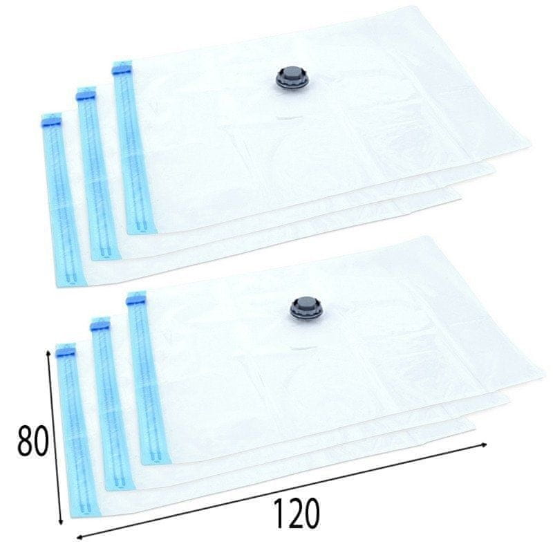 Komplet šestih vakuumskih vrečk velikosti 120 × 80 cm. Vrečke iz folije. Z njihovo pomočjo lahko prihranite 75 % prostora za shranjevanje. Vrečke bodo zaščitile shranjene izdelke pred umazanijo, pršicami in molji. Izjemno enostavne za uporabo. Ko vrečko napolnimo s predmeti, iz nje s sesalnikom ali sesalno črpalko izsesamo zrak, s čimer zmanjšamo prostornino vrečke in prihranimo prostor. Originalni izdelek češke blagovne znamke Orion. Izdelano v skladu z evropskimi standardi.