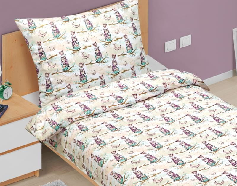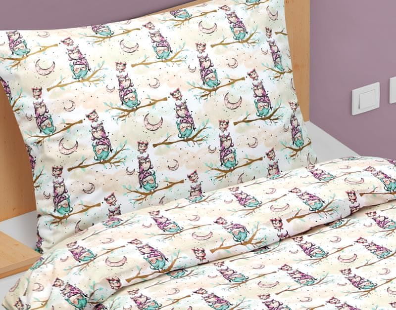 Bombažno posteljno perilo Junior - 140x200, 70x90 cm - Sova na veji