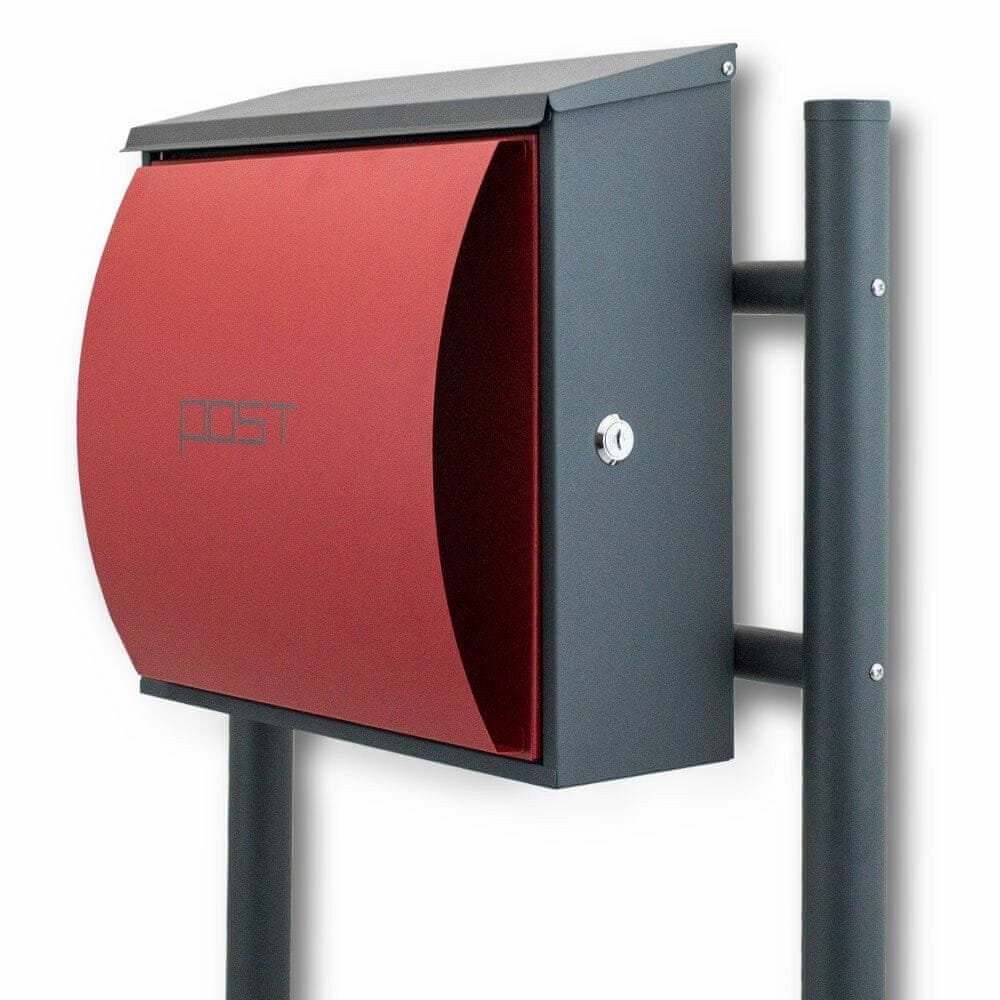 POLOKROGEL RDEČ PISEMNI NABOJNIK PROSTOSTOJEČ   Samostoječi nabiralnik v moderni izvedbi na stojalu. Nabiralnik ima loputo, ki se lahko zaklene in je odporna na padavine. Dodatno je opremljen z zavihkom, ki se odpira na stran, tako da se v primeru velikega A4 pisma ne poškoduje. Kapaciteta škatle je velika, zato je primerna tako za doma kot za večja podjetja. Škatla je enostavna za uporabo zahvaljujoč veliki loputi, ki jo odpre, poleg tega pa je vsaka škatla opremljena z 2 kompletoma ključev.     Značilnosti izdelka: – Moderna škatla – Stranska ključavnica – Ohranjen predal za časopise – Rdeča vrata – Prašno lakirana kovinska škatla – Opremljena s stojalom     Tehnični podatki: – Dimenzije 50 × 124 × 19 cm – Dimenzije škatle 35 × 33 × 16 cm – Mere predala za časopise: 30 × 26 × 5 cm – Višina stojala 120 cm – Premer stojala 4 cm – Teža 5,1 kg     V kompletu: Pisemski nabiralnik Kompleti za montažo 2 x komplet ključev Stojalo, prilagojeno nabiralniku