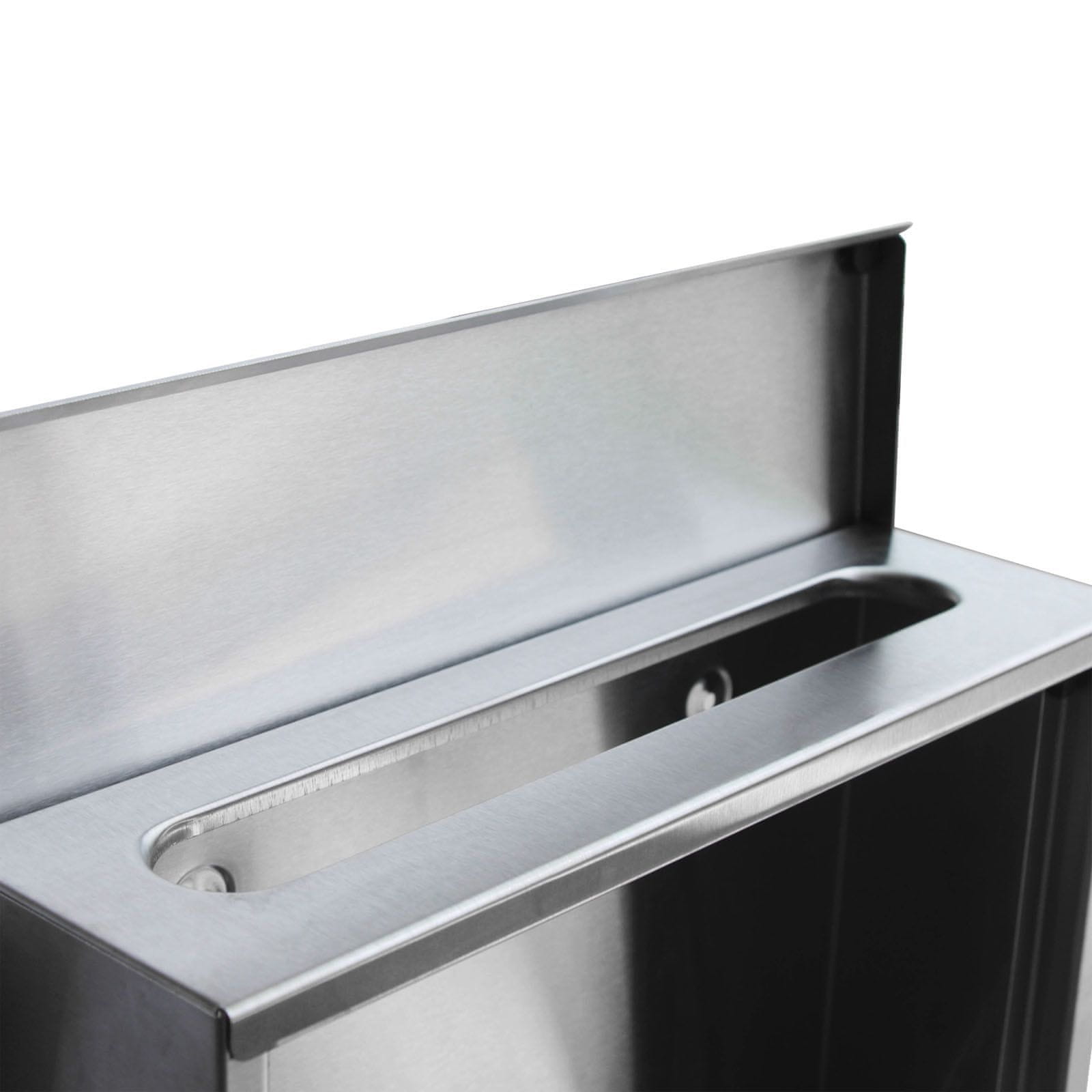 Ta eleganten poštni nabiralnik iz visokokakovostnega nerjavnega jekla navdušuje s svojim elegantnim dizajnom. S svojimi 30,5 × 9,6 × 33,5 cm (Š x G x V) skoraj ne zavzame prostora, ponuja pa veliko prostora. Skozi režo segajo celo črke velikosti 245 × 35 mm. Poleg tega ima ta nabiralnik praktičen časopisni zvitek. To omogoča enostavno zvijanje in namestitev časopisov v cev. Minili so dnevi, ko je bil časopis stisnjen v poštno režo in ni bilo prostora za preostalo pošto. Tudi če niste doma, vam nabiralnik ponuja dovolj prostora za shranjevanje vaših pisem.