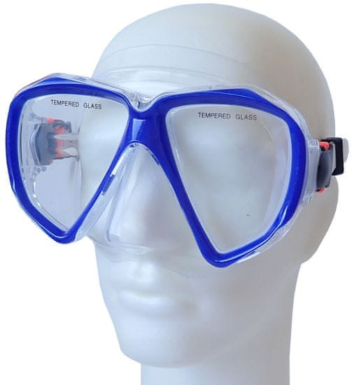 Potapljaška očala – kaljeno steklo, silikonsko tesnilo zagotavlja popoln oprijem na obrazu in učinkovito preprečuje vdor vode v notranjost očal. Silikon je material, ki je popolnoma odporen na vremenske vplive in slano vodo. Očala so sodobno oblikovana in dobavljena v zaščitnem plastičnem ohišju, ki je trpežno in preprečuje poškodbe očal med prenašanjem. Priporočljivo za mlajše in odrasle plavalce. Na voljo v modri barvi, glej fotografijo.