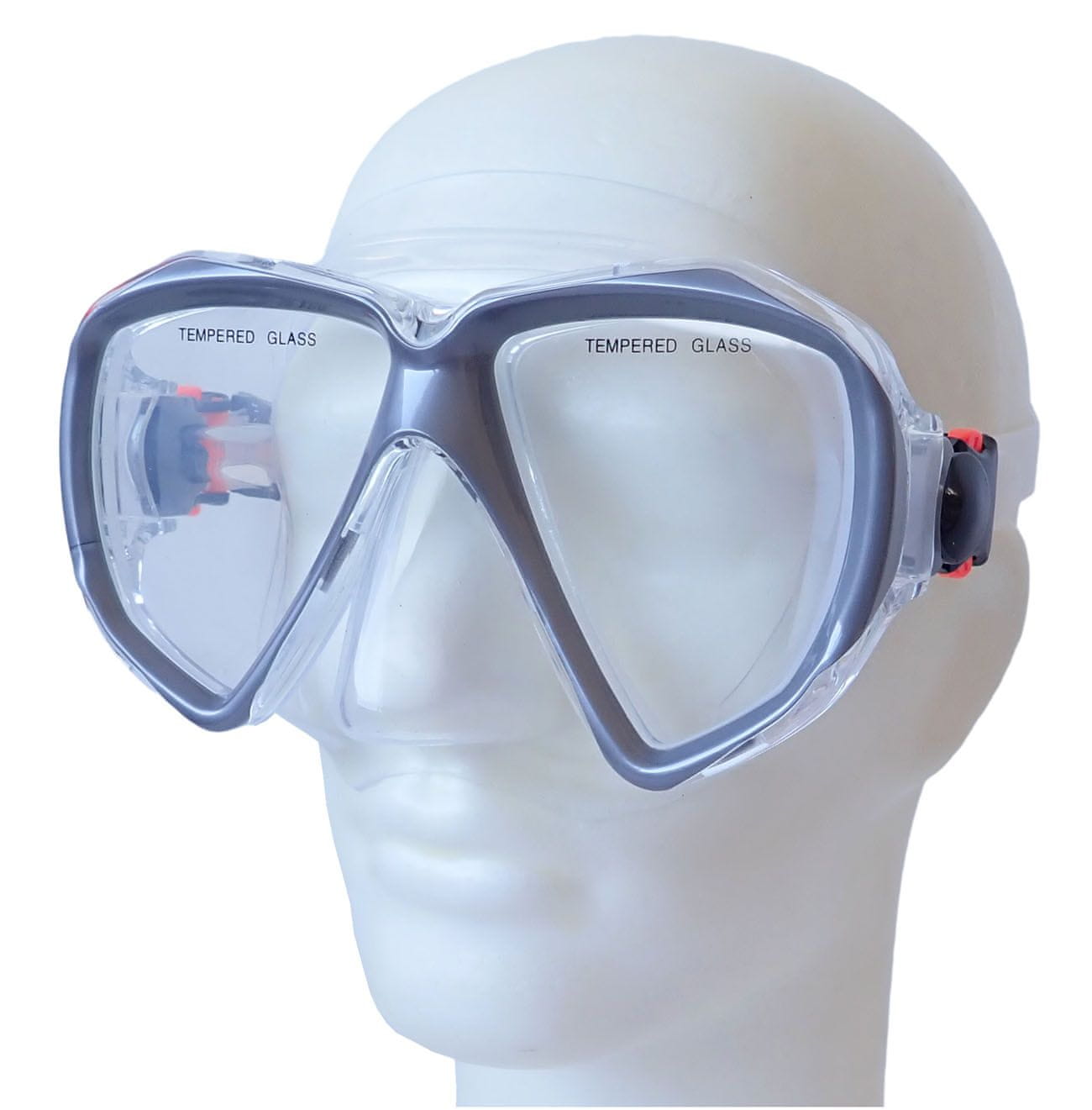 Potapljaška očala – kaljeno steklo, silikonsko tesnilo zagotavlja popoln oprijem na obrazu in učinkovito preprečuje vdor vode v notranjost očal. Celoten opis