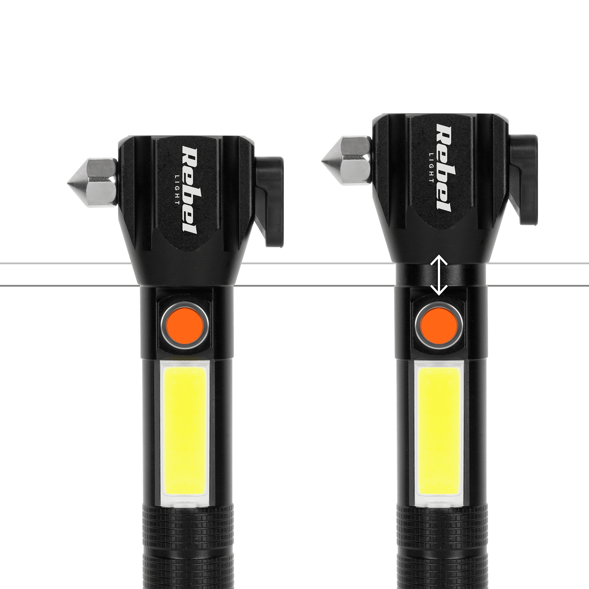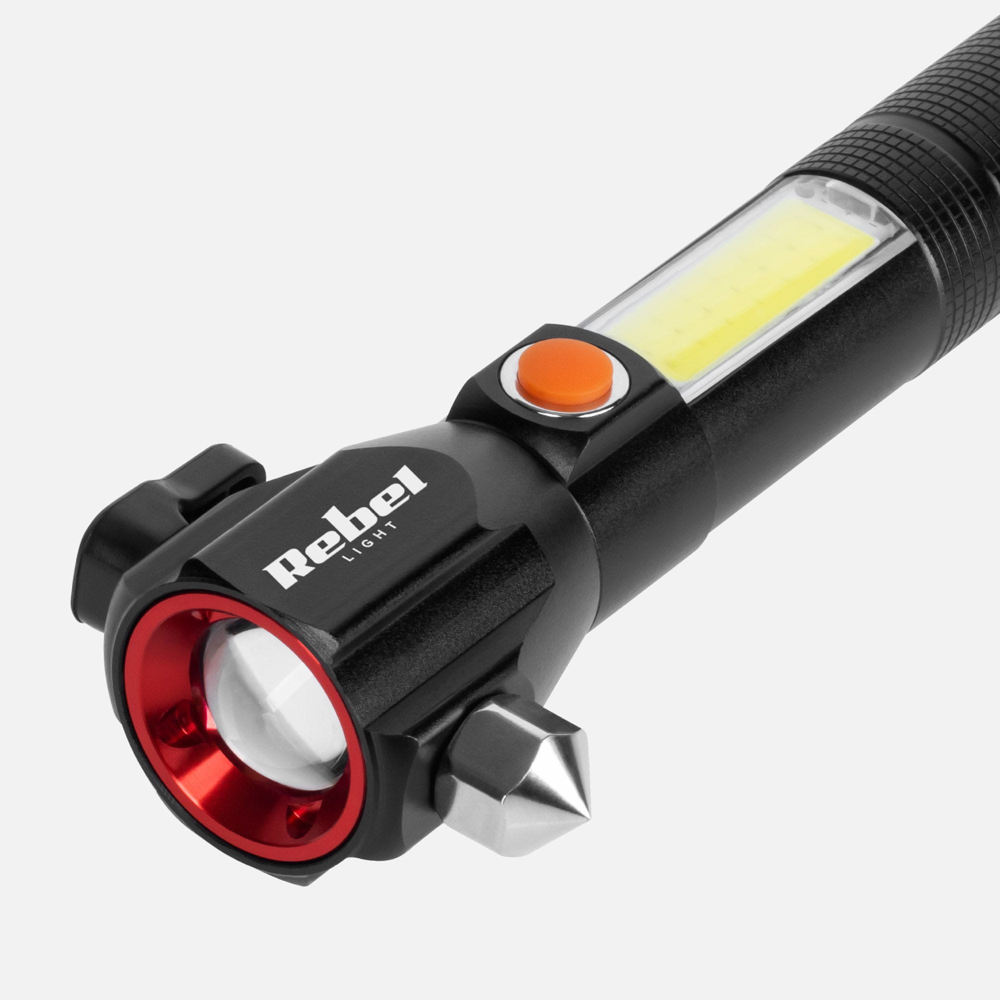 Eden najpomembnejših elementov svetilke Rebel URZ0941 ima vgrajeno razbijalo oken. To vam omogoča, da v primeru okvare ali nesreče enostavno razbijete okno in pobegnete iz vozila. Poleg tega ima izdelek rezalnik, kar je še posebej pomembno v nujnih primerih. Dodatki vključujejo magnet, ki omogoča preprosto pritrditev na kovinske površine.