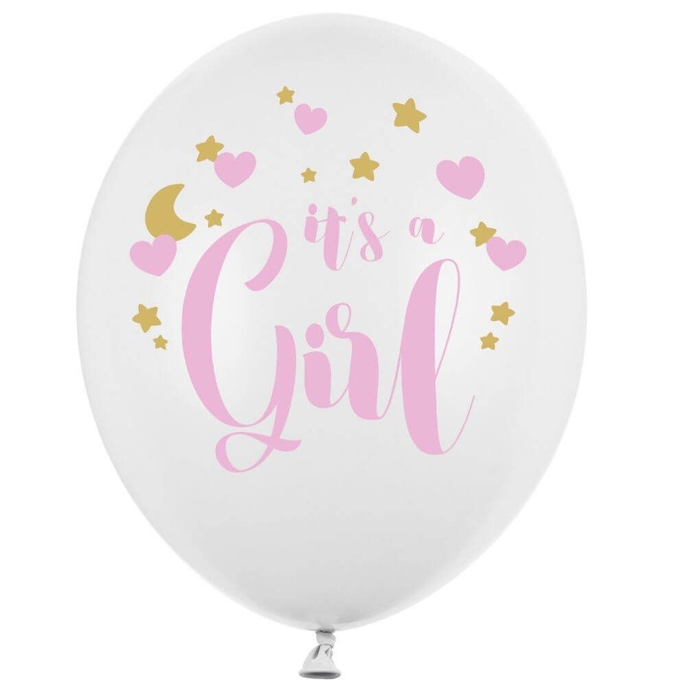 Its a Girl baloni nam naredijo zabavo še bolj zabavno in popestrijo ambient, kjer se odvija dogodek. Baloni so prelepe pastelno bele barve z pink potiskom napisa It's a Girl. Naredite pravljični prihod novorojenčka in mamice, saj si to zaslužita. Z vključitvijo balonov v buket dekoracijo, zabave ne boste nikoli zgrešili. Lahko je tudi kot preprosto in ljubko darilo ob rojstvu. Združite balone z dekoracijskim trakom in drugimi baloni ter ustvarite balonov šopek za namizno dekoracijo, ki bo kot nalašč za vaš dogodek. To je odličen dodatek za vaš dogodek. Baloni iz navadnega prostora pričarajo poseben, svečan ambient. Pri tem svetujemo, da je balonov veliko, le tako bo učinek maksimalen. Združite več balonov skupaj z različnimi dekorativnimi trakovi in naredite prekrasen šopek, ki bo krasil prostor ali mizo. Z idejami in svetovanjem, kako okrasiti vaš prostor, vam bomo z veseljem pomagali. Kombinirajte balone še z drugimi party izdelki in naredite vtis na vaše goste. V enem setu je 10 lateks balonov s potiskom, kar je ravno prav za začetek dekoracije. Za popolen učinek pa svetujemo okrasitev z več seti, odvisno od velikosti prostora, kjer se bo odvijala vaša zabava ali dokodek. Helij in Hi float tekočina poskrbita, da bodo vaši baloni lebdeli še dolgo in krasili prostor vsaj še dva tedna po polnitvi. Lahko pa jih napihnete z zrakom, v pomoč naj vam bo tlačilka. Balon je lahko tudi prijeten spominek na prijetno zabavo, zato vam lahko krasi prostor še tedne. Balone ob končani zabavi zavržete in jih reciklirajte kot plastiko.