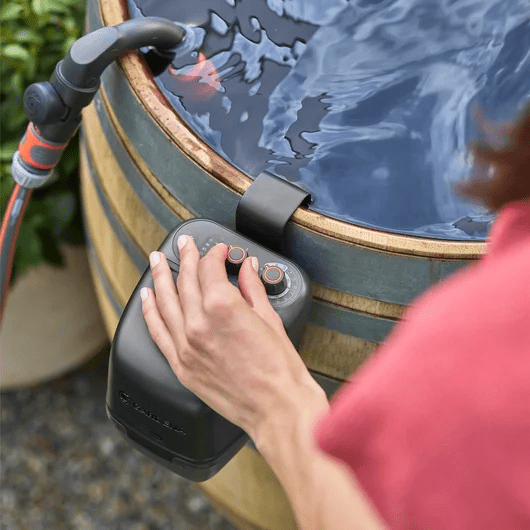 Za dodatno brezskrbnost poskrbi samodejni izklop s časovnikom. Črpalka lahko deluje brez nadzora z nastavitvijo na 5, 10 ali 15 minut, nato pa se sama izklopi. To preprečuje nepotrebno porabo baterije in vode, saj vam ni treba čakati ob črpalki.