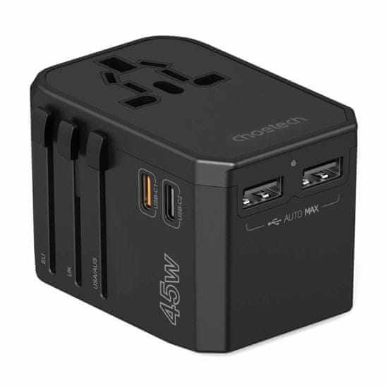 Choetech potovalni adapter + USB TipC TipA PD 45W polnilec EU USA UK AU PD6045