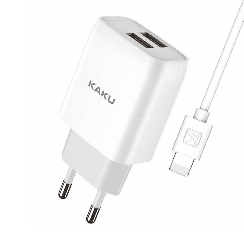 Kaku Hišni polnilec Q/HHDZ 2,4A 2x USB vtič s polnilnim kablom Lightning bel