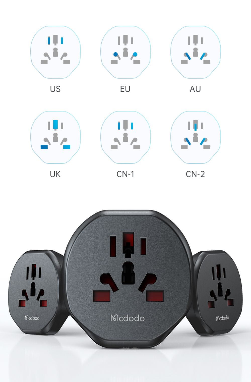Mcdodo MCDODO ADAPTER POTOVALNI ADAPTER ANGLEŠKI VTIČ IZ EU V USA EU US UK