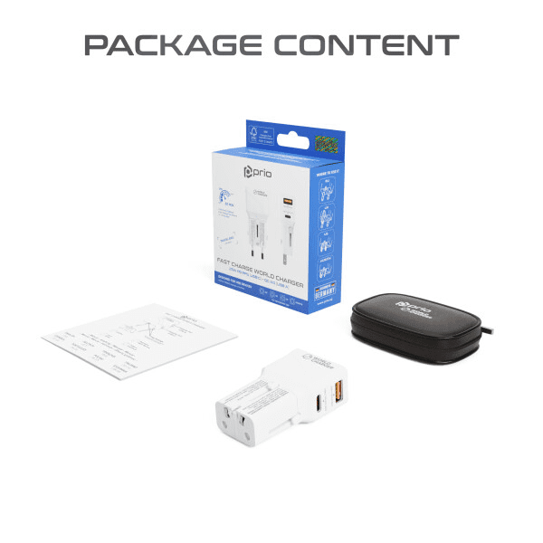Prio svetovni adapter Quick Charge 25W izhod USB in Type C – Original (EU Blister) bel
