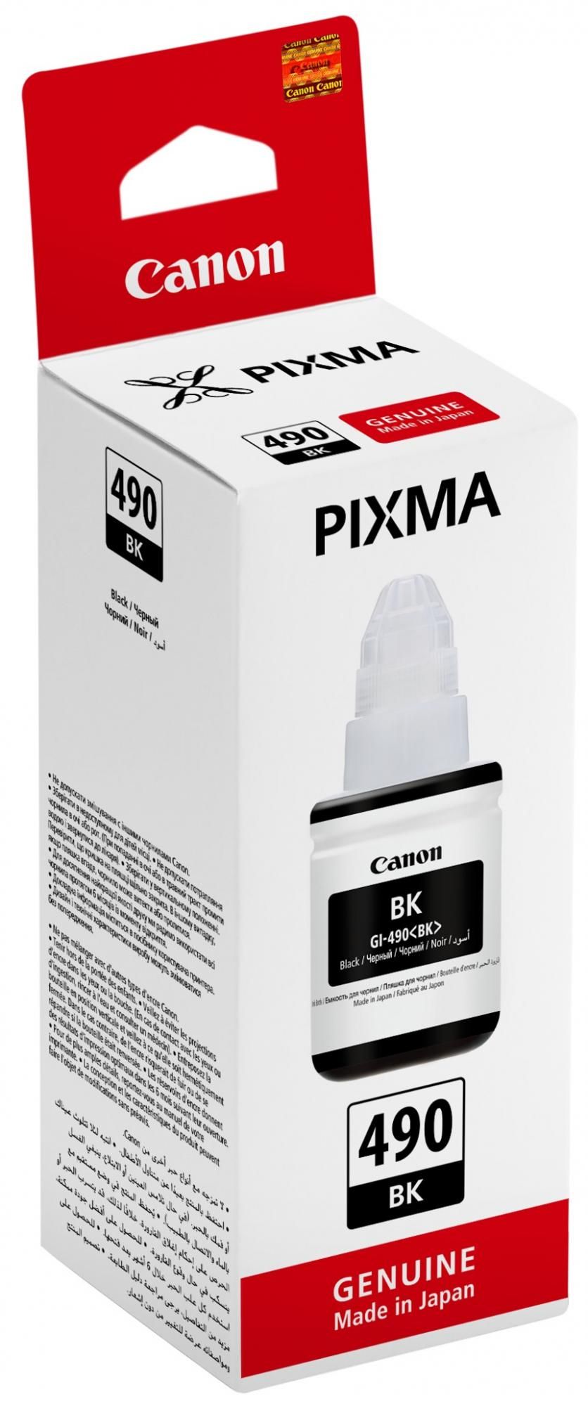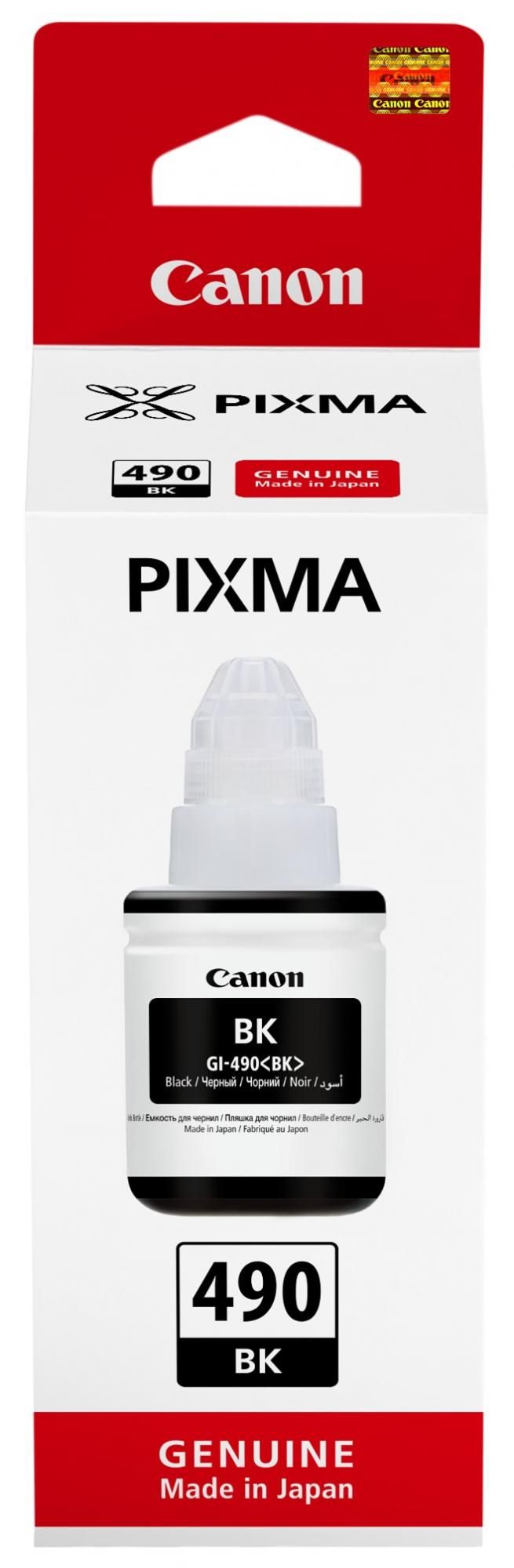 Steklenička črnila Canon GI-490 (Črna) za Canon tiskalnike zadostuje za 6000 strani. Njena prostornina znaša 135 ml, namenjena pa je tiskalnikom Canon G1400, G2400 in G3400.