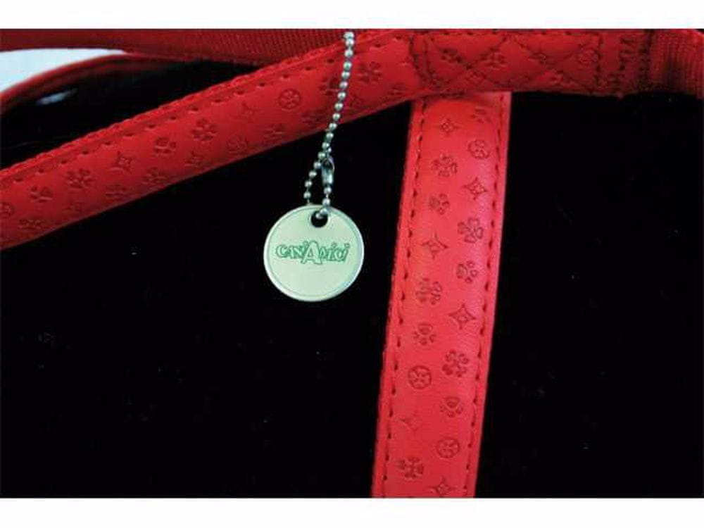 usnjen povodec v rdeči barvi s polnim potiskom, podložen s finim najlonom v isti barvi