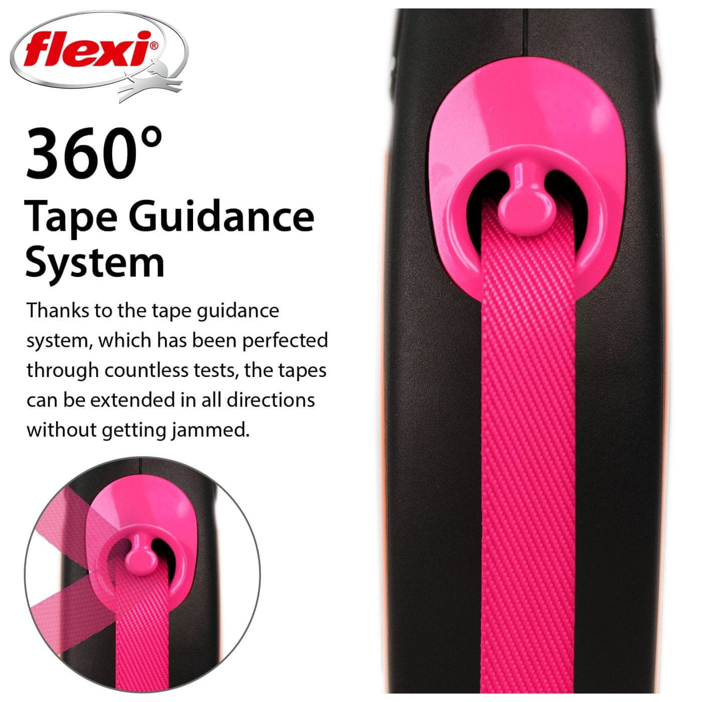 Flexi Neon ponuja tudi izhod brez zatikanja in vodenje traku v vse smeri, izpopolnjeno z neštetimi testi. Z dolžino 5 m vašemu partnerju zagotavlja svobodo gibanja, ki jo potrebuje.