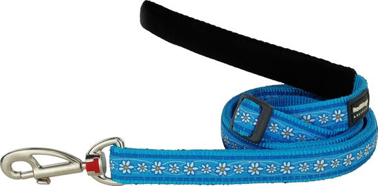 Moder najlonski pasji povodec z rožicami z vzorcem DAISY CHAIN avstralske znamke RED DINGO. Ti povodci so kakovostni, vzdržljivi, močni in izgledajo odlično. Vodila so izdelana iz zelo kvalitetnega in močnega najlonskega materiala. Dolžino povodca lahko spreminjate s pomočjo praktične sponke, največja dolžina klasičnega povodca pa je 180 cm. Vodilni ročaj je oblazinjen, kar poveča udobje za lastnika pri držanju in vodenju psa. Vsi povodci so zaključeni s fiksnim karabinom.