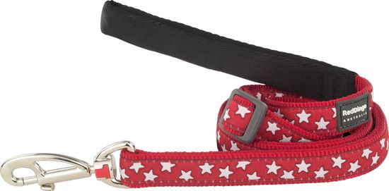 Rdeč najlonski pasji povodec z zvezdicami avstralske znamke RED DINGO. Ti povodci so kakovostni, vzdržljivi, močni in izgledajo odlično. Vodila so izdelana iz zelo kvalitetnega in močnega najlonskega materiala. Dolžino povodca lahko spreminjate s pomočjo praktične sponke, največja dolžina klasičnega povodca pa je 180 cm. Vodilni ročaj je oblazinjen, kar poveča udobje za lastnika pri držanju in vodenju psa. Vsi povodci so zaključeni s fiksnim karabinom.