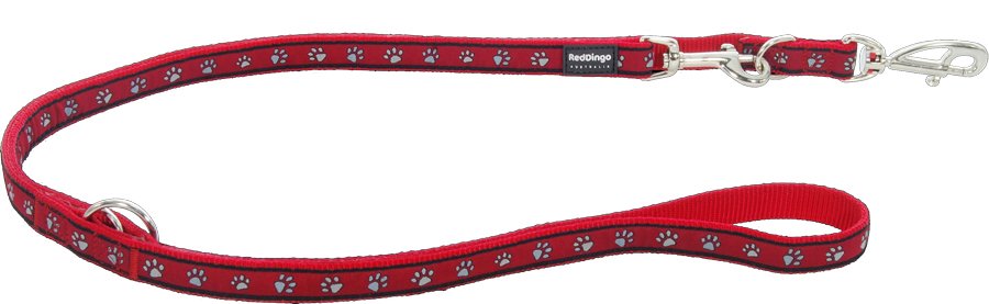 Eleganten preklopni povodec za psa Red Dingo rdeče barve s tačkami z vzorcem PAW PRINTS. Preklopna vrvica ima dolžino 2,0 m in je zaključena z visokokakovostnimi karabini, dovolj močnimi za debelino vrvice, z edinstvenim dizajnom na obeh koncih. Celoten opis