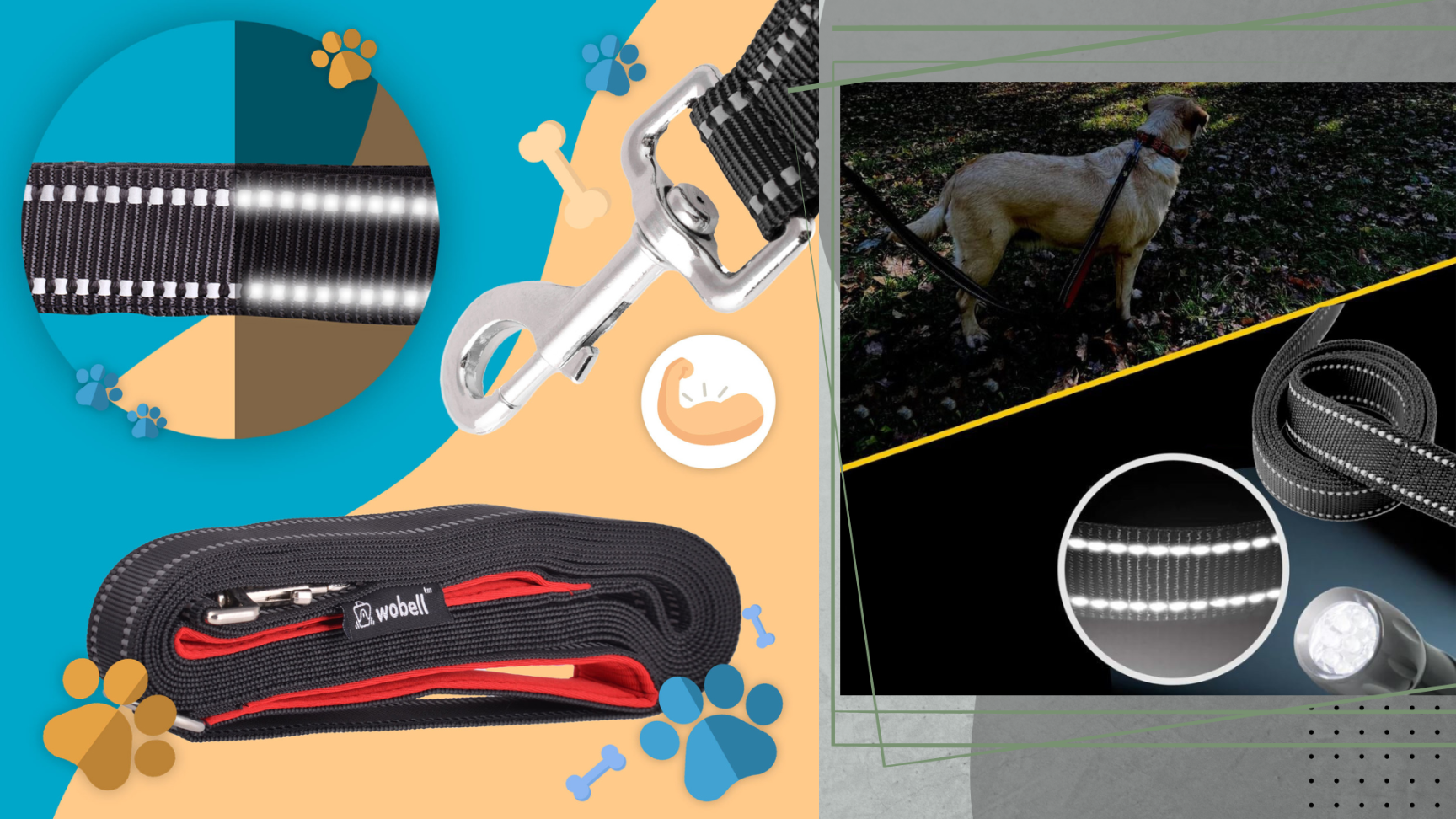 ✅Odsevni – povodec ima po celotni dolžini všita odsevna vlakna, zaradi katerih bo vaš ljubljenček v mraku jasno viden