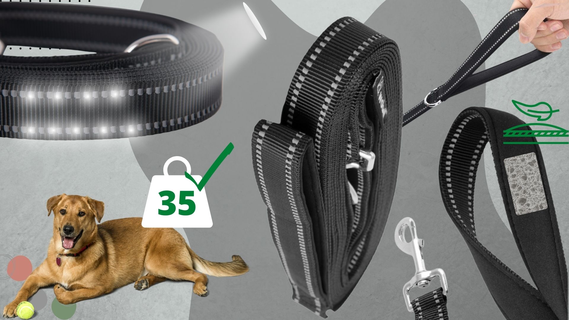 - ✅Odsevni – povodec ima po celotni dolžini všita odsevna vlakna, zaradi katerih bo vaš ljubljenček v mraku jasno viden