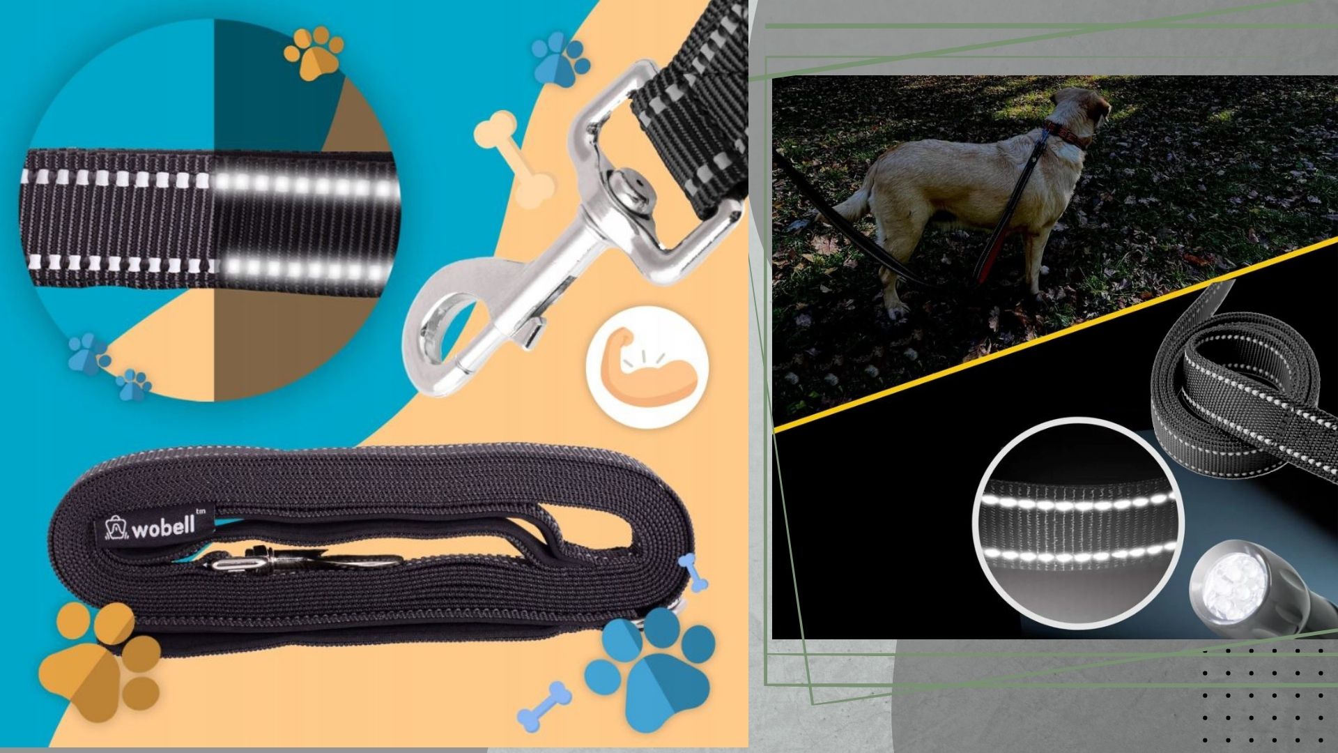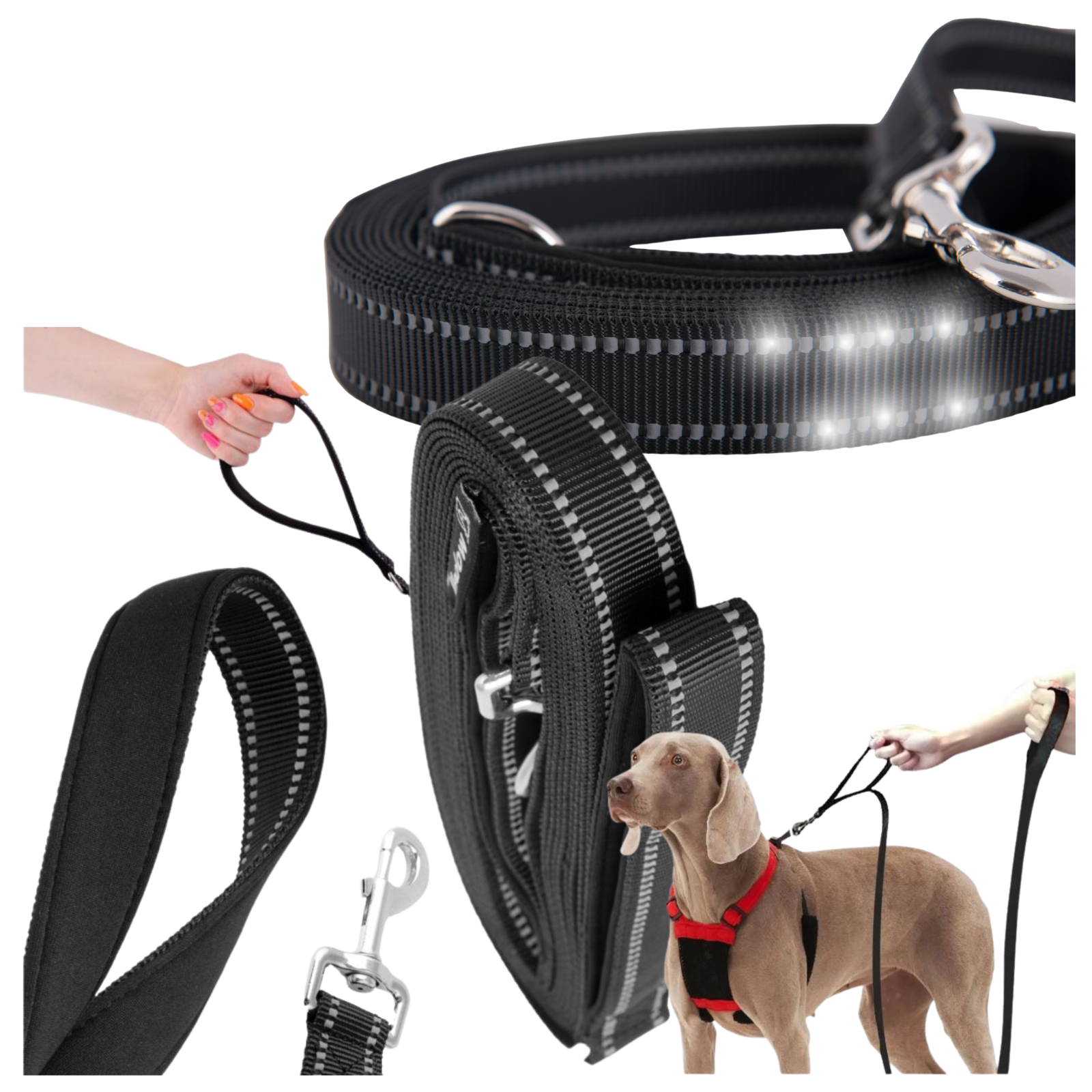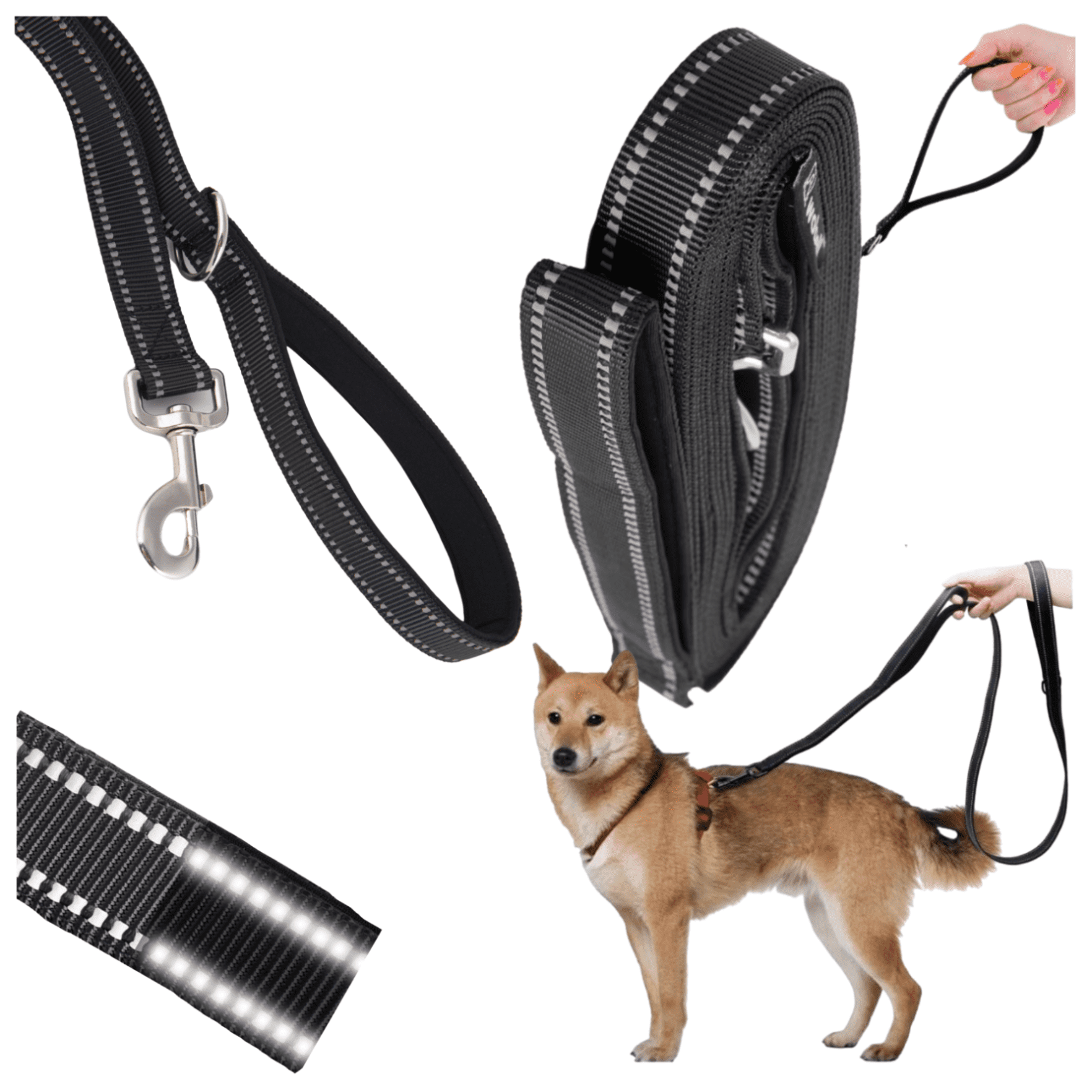 ➡️MOČAN DOLG ODSEVNI TRENING POVODEC Z DVEMA ROČAJIMA 5M