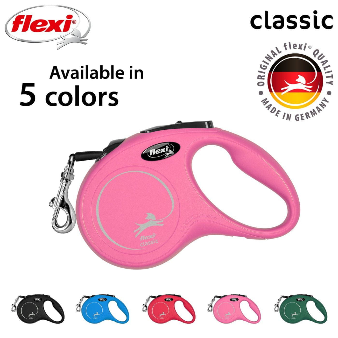 Povodci flexi Classic ponujajo udoben oprijem, vzdržljiv sistem navijanja ter kakovosten, varen in intuitiven zavorni sistem, ki v delčku sekunde ustavi gibanje psa. Za enostavno pritrditev na ovratnico ali pas, je povodec opremljen s kromirano karabinko. Seveda je izboljšan izhod pasu, ki zagotavlja manipulacijo v vseh smereh brez zatikanja – potrjeno z neštetimi testi.