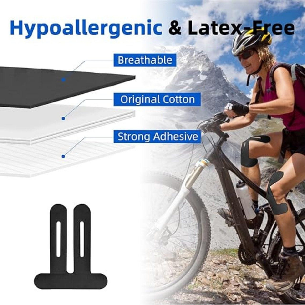 Uporaba: Podpora in zaščita kolena med športom in vadbo. Poskrbite, da bo koleno čisto in suho, preden nalepite trak. Po želji odrežite odvečen material in poskrbite, da se bo trak prilagajal kolenu. Odlepite papir na zadnji strani. Nalepite v smeri mišic.