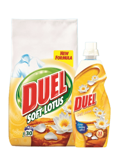 Pralni prašek in mehčalec Duel Soft sta vodilna izdelka blagovne znamke Duel. Krasi ju njun izvirni orientalski vonj, ki s popolno mešanico potonike in plemenitega mošusa izžareva eleganco in svežino vašega perila.