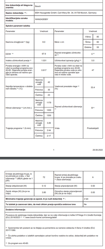 Bosch WAN24265BY pralni stroj, s polnjenjem spredaj, zmogljivostjo pranja 8 kg, inverterskim motorjem in sistemom SpeedPerfect. Celoten opis