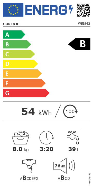 | Poraba električne energije (100 ciklov) | 54 kWh |