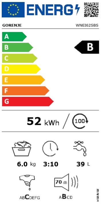 Mnoge inovativne rešitve kot so učinkoviti programski algoritrmi, boben SpaDrum ter optimalno omočenje perila QuickWet v kombinaciji z inteligento senzorsko tehnologijo SensorIQ zagotavljajo odlične energijske učinke. Gorenjevi najboljši modeli se ponašajo z uvrstitvijo v najvišje energijske razrede.