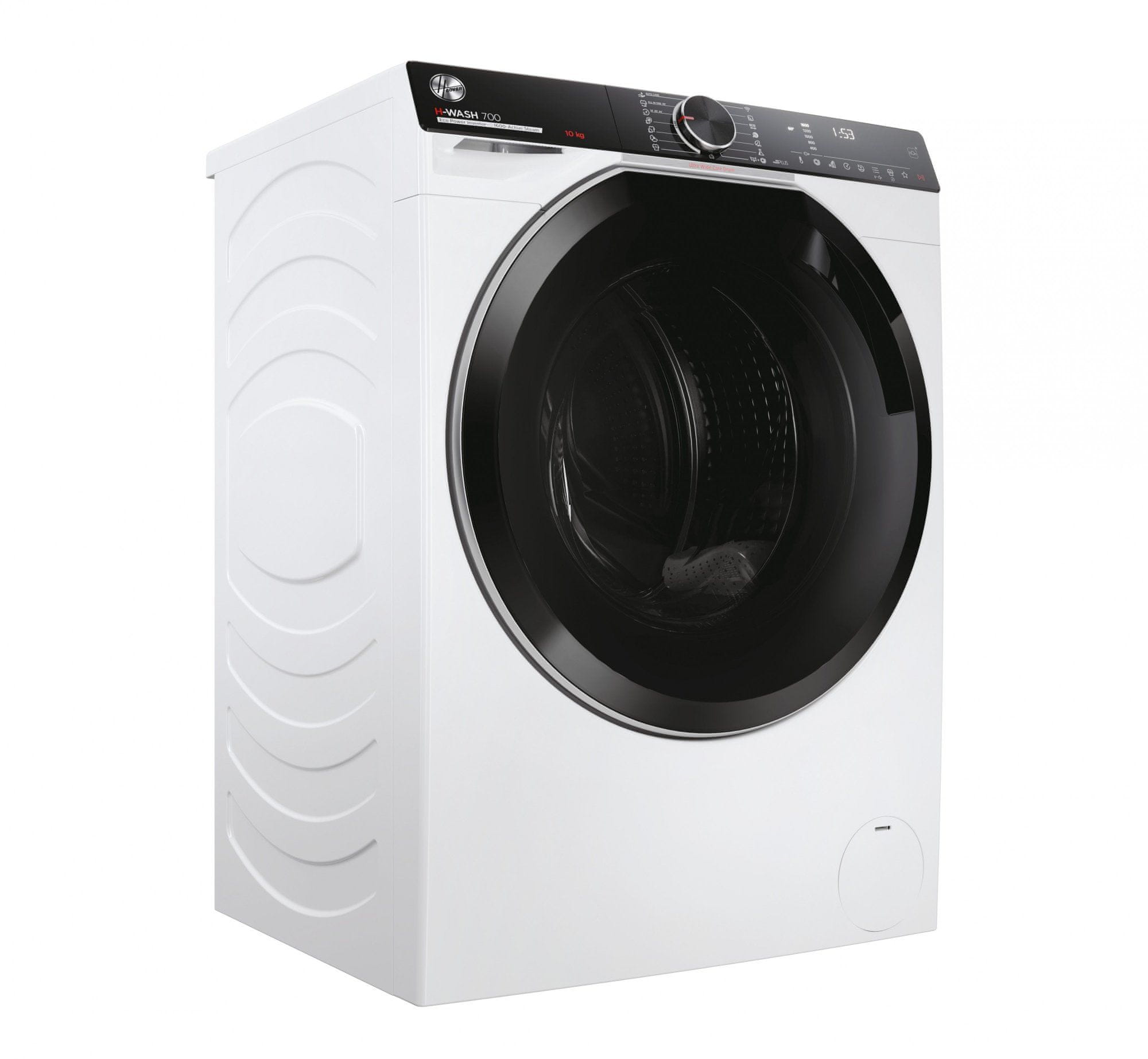 Njegov sistem Power Care ustvari visoko koncentrirano mešanico vode in detergenta, jo med pranjem pod visokim pritiskom razprši po bobnu, kjer prodira v vlakna in tako dosega boljše rezultate pranja pri nižjih temperaturah. Poleg klasičnega načina upravljanja ima stroj na voljo upravljanje preko aplikacije hOn, kjer imate na voljo širok nabor dodatnih programov. Tam najdete tudi funkcijo Scan to Care, s katero ustvarite svojo virtualno garderobo. Preprosto poslikajte svoja oblačila, aplikacija pa bo predlaga najprimernejši program za nego vaših oblačil.